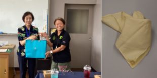 そのお礼として、引率教員の手作りのスカーフを後援会に寄付していただきました。